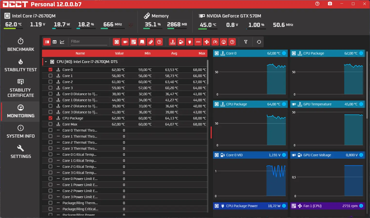 OCCT — это мощная утилита для стресс-тестирования компьютера, предназначенная для проверки стабильности работы центрального процессора, оперативной памяти и видеокарты под высокой нагрузкой. Программа позволяет выявить возможные сбои в работе оборудования, отследить температурные показатели и напряжение, а также оценить надежность системы в условиях экстремальной нагрузки. Результаты теста отображаются в виде наглядных графиков, что упрощает анализ производительности и выявления узких мест.