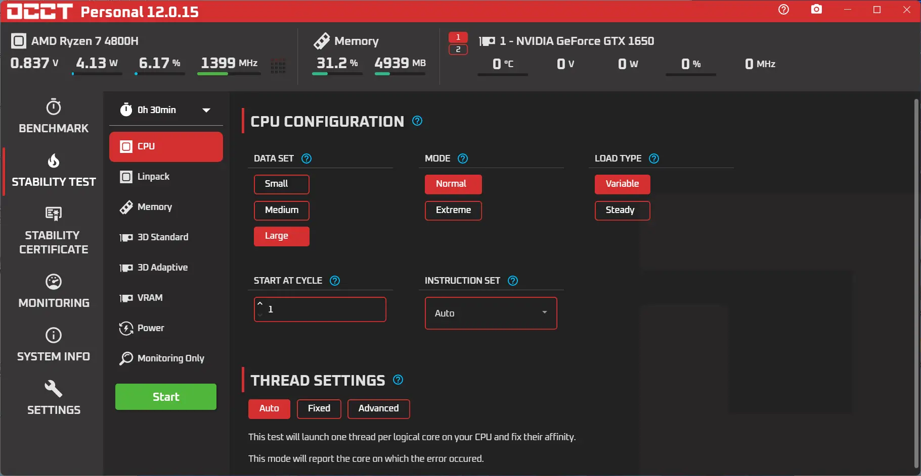 Запуск OCCT не требует сложной настройки — после открытия программы пользователь может выбрать тип теста: CPU, GPU или совмещённый режим. Перед началом нагрузки рекомендуется настроить параметры продолжительности и объём используемой памяти. Программа отображает динамику температуры, частоты и напряжения, а по завершении теста формирует отчёт в графическом виде. Для сохранения результатов доступна функция экспорта данных, что удобно при сравнении производительности в разных конфигурациях. Портативная версия позволяет запускать тест без установки, что особенно полезно при диагностике чужих систем.