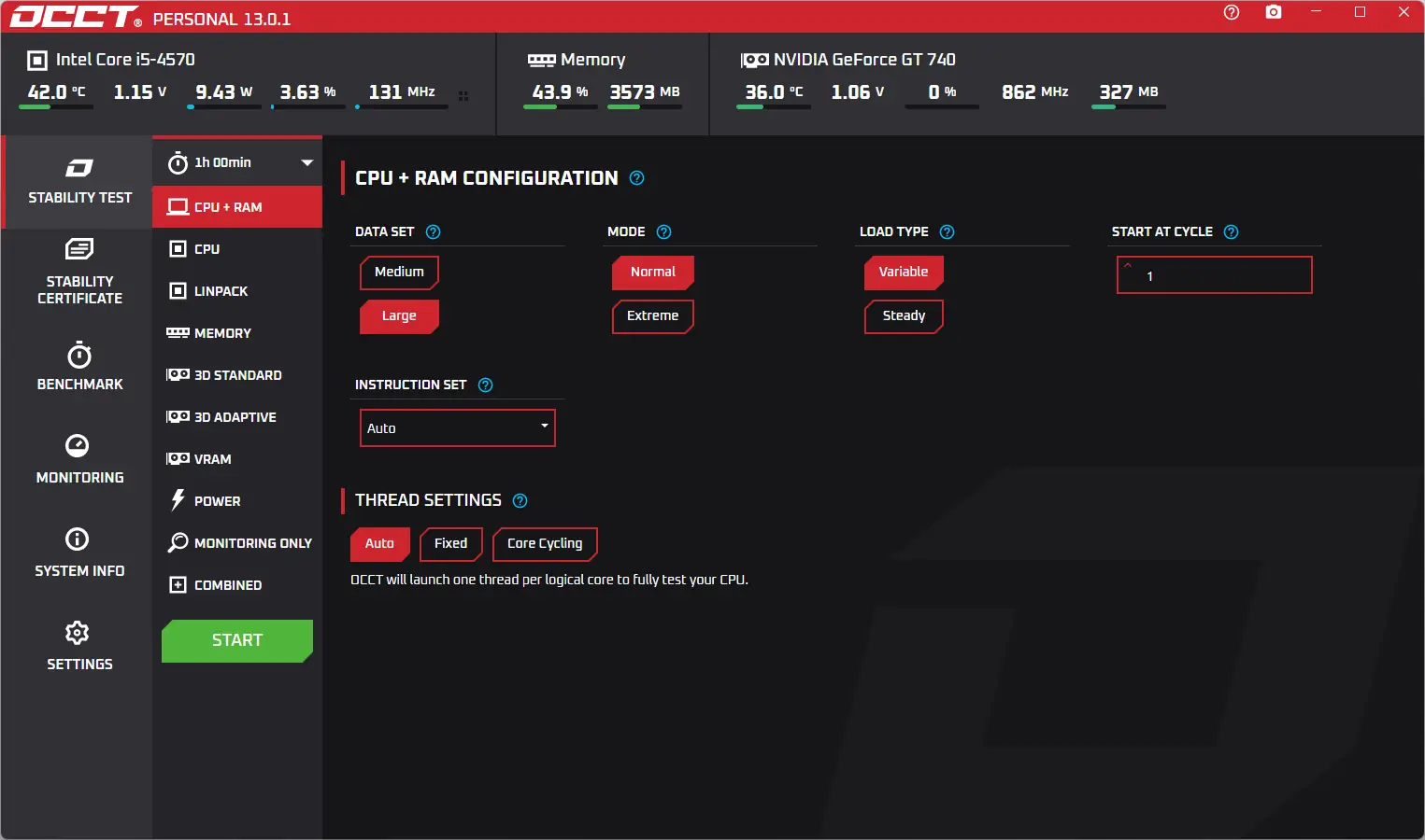 Запуск OCCT не требует сложной настройки. После открытия программы пользователь выбирает тип теста: CPU, GPU или RAM. Для каждого компонента доступны различные режимы нагрузки, включая автоматический и ручной. Перед началом теста рекомендуется проверить состояние системы охлаждения, так как высокая нагрузка может привести к перегреву. В процессе выполнения теста программа отображает графики изменения температуры, напряжения и загрузки, что позволяет оперативно выявить возможные проблемы.