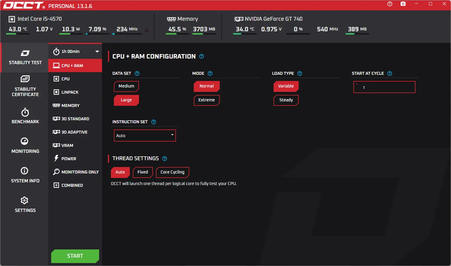 OCCT представляет собой профессиональный инструмент для диагностики стабильности аппаратных компонентов персонального компьютера. Утилита способна одновременно тестировать взаимодействие процессора и оперативной памяти, а также проводить отдельные проверки каждого из этих устройств. Тестирование осуществляется в условиях, близких к экстремальным, что позволяет заранее выявить потенциальные проблемы, связанные с разгоном, неисправностями или недостаточным охлаждением. Программа поддерживает многоядерные процессоры и корректно функционирует в современных версиях операционной системы Windows.