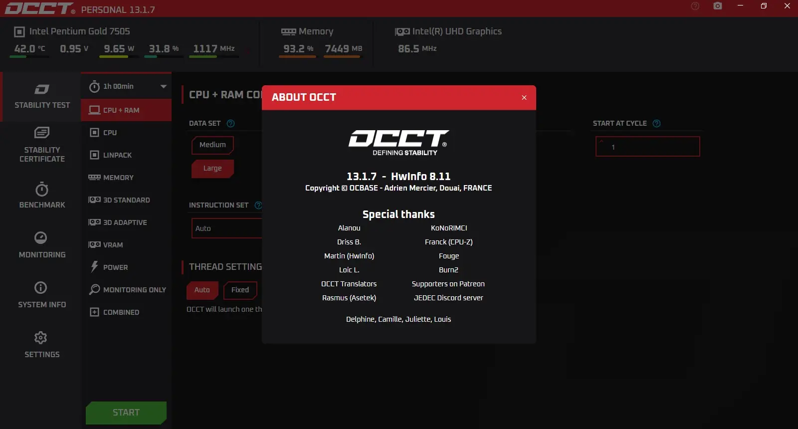 OCCT Perestroika специализируется на синтетических нагрузках, имитирующих экстремальные условия работы системы. Утилита поддерживает параллельное тестирование процессора и оперативной памяти, а также позволяет запускать отдельные проверки каждого компонента. Это особенно полезно при разгоне или диагностике нестабильной работы ПК. Программа корректно определяет архитектуру современных многоядерных CPU, включая производительные и энергоэффективные ядра, что повышает точность теста.