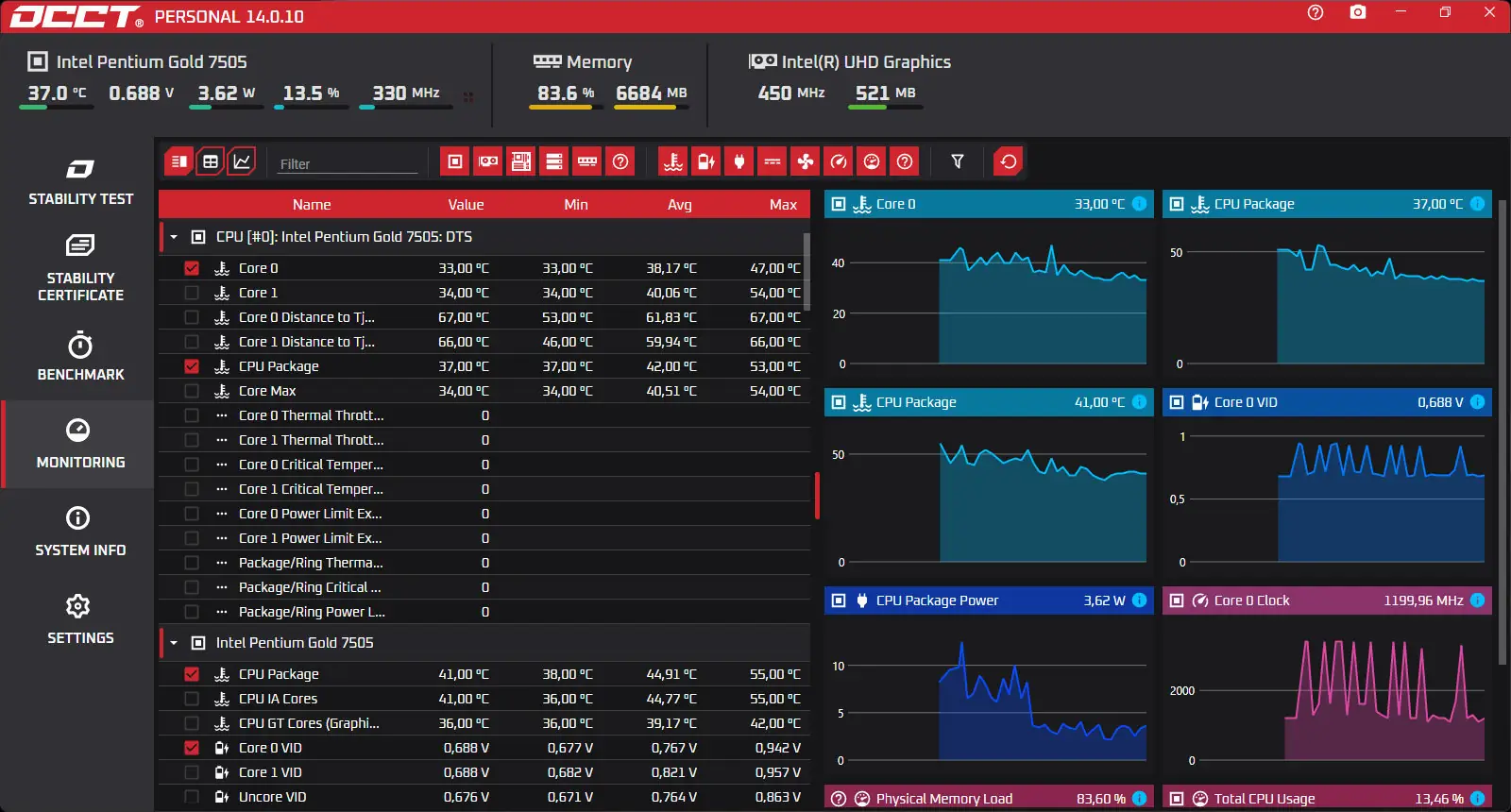 OCCT — мощная утилита для тестирования стабильности работы компьютера, позволяющая выявить нестабильность системы под высокой нагрузкой. Программа проводит комплексные стресс-тесты центрального и графического процессоров, оперативной памяти, а также контролирует температурные режимы компонентов. Результаты отображаются в наглядных графиках, что упрощает анализ производительности и надёжности оборудования.