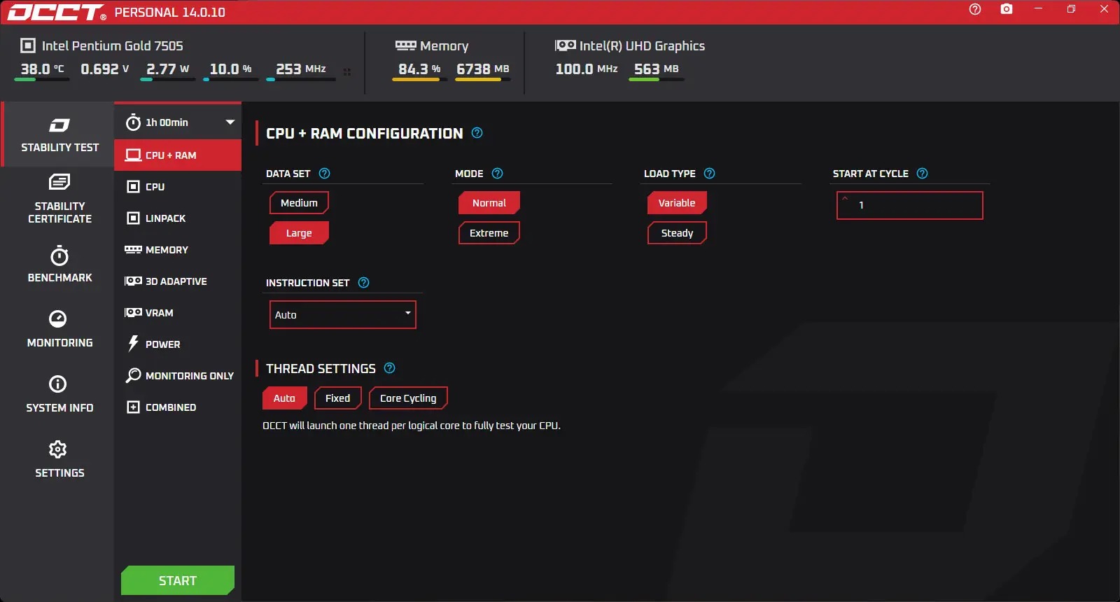 - Проведение стресс-теста центрального процессора и оперативной памяти в парном или раздельном режиме