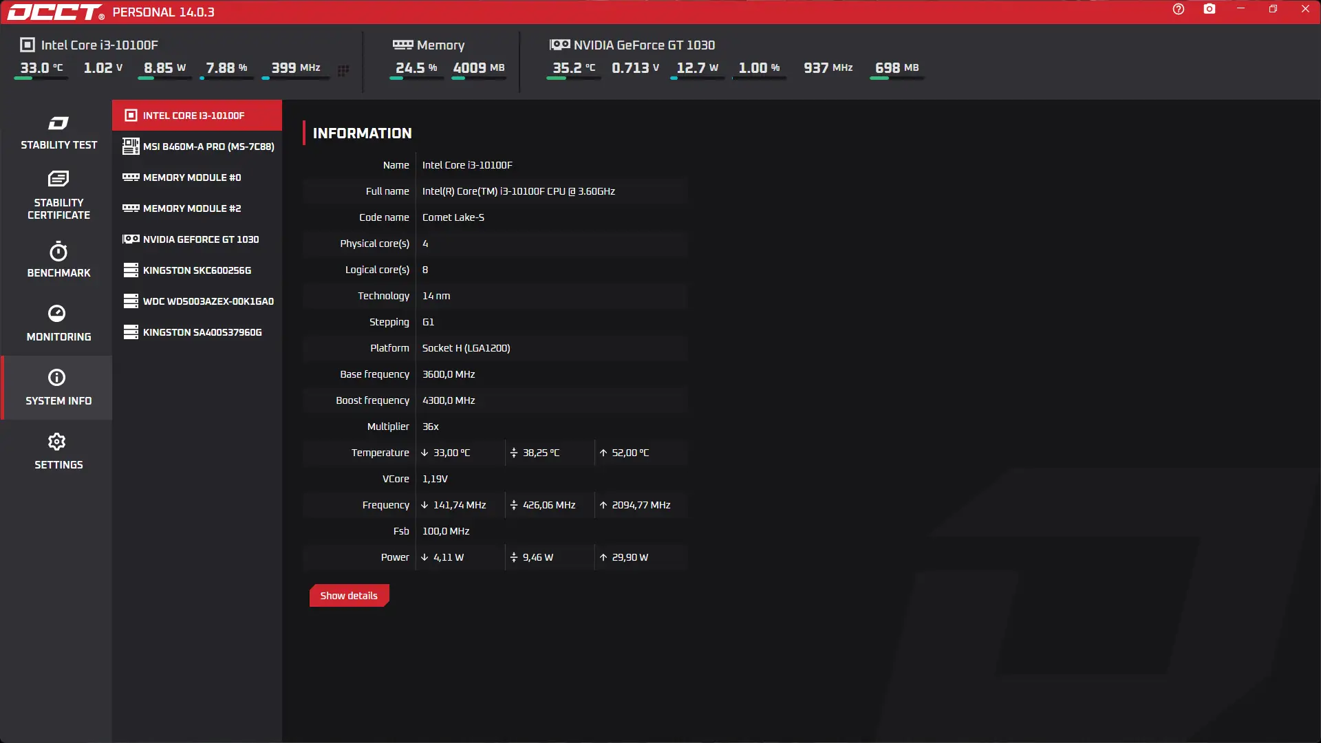 OCCT представляет собой продвинутую системную утилиту, ориентированную на глубокое тестирование аппаратных компонентов персонального компьютера. Программа способна проводить стресс-тест как центрального процессора, так и оперативной памяти, включая комбинированный режим, позволяющий одновременно нагружать оба компонента. Это даёт возможность выявить нестабильность системы при комплексной нагрузке, что особенно важно для оценки надёжности после разгона или сборки нового ПК. Результаты каждого теста детализируются в виде графиков напряжения, температуры и частоты, что позволяет точно определить момент сбоя.