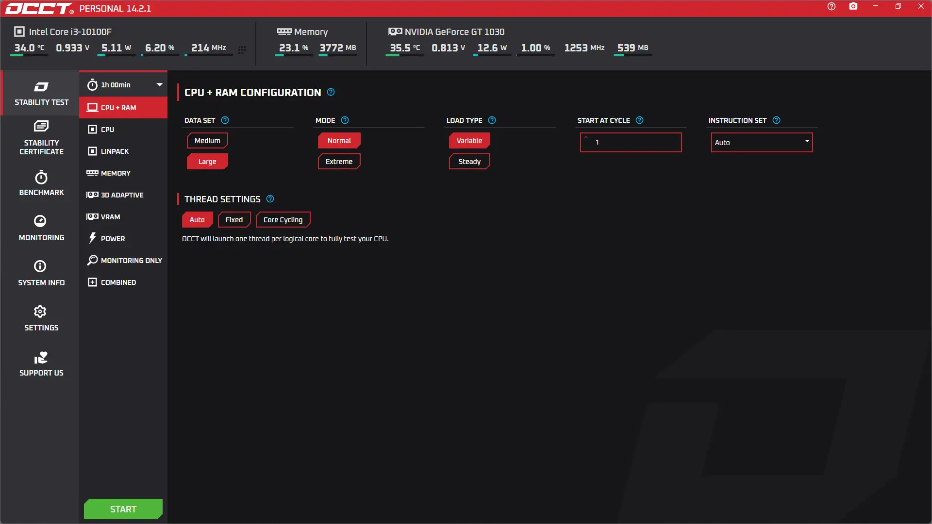 Запуск OCCT начинается с выбора режима тестирования: процессор, память, видеокарта или комбинированный вариант. Пользователь может настроить продолжительность нагрузки, уровень сложности шейдеров и параметры мониторинга. Перед началом теста система отображает текущее состояние компонентов, включая температуру и частоту. Во время выполнения нагрузки программа анализирует появление ошибок, скачков напряжения и перегрева. При использовании в режиме GPU теста, активируется рендеринг сложной сцены с нагрузкой на графический процессор. Для видеопамяти реализован тест через CUDA, что особенно эффективно для видеокарт NVIDIA. После завершения теста доступен подробный отчёт с графиками и возможными ошибками.