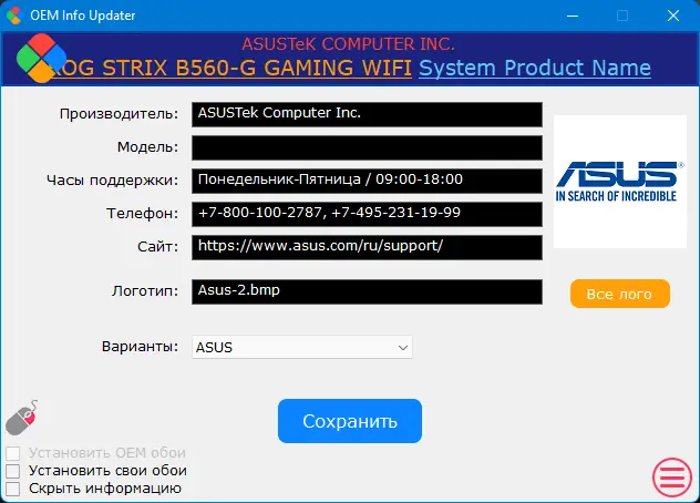 Как пользоваться OEM Info Updater