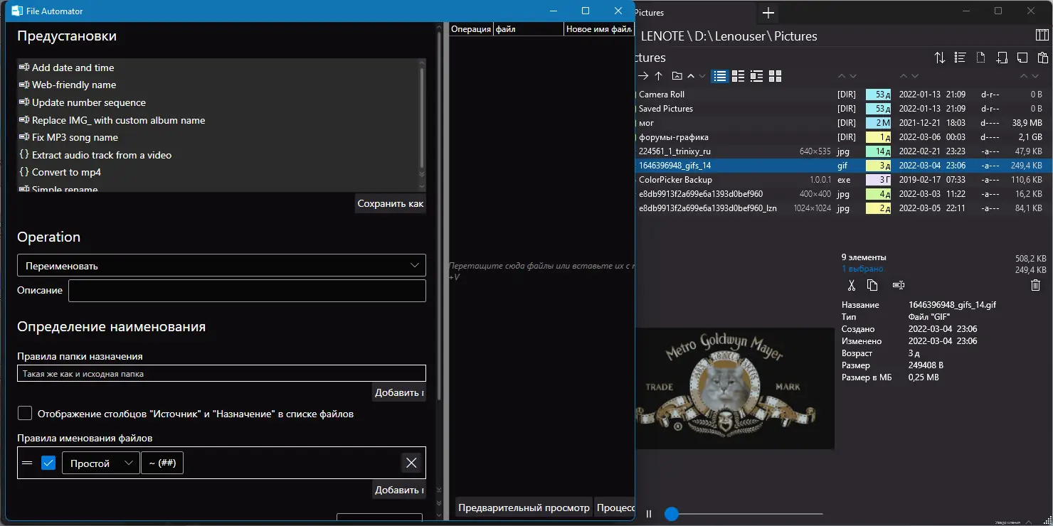 Программа демонстрирует высокий уровень удобства при работе с файлами, особенно на системах с глубоко вложенными каталогами. Удобная система тем позволяет адаптировать внешний вид под личные предпочтения, а цветовые теги помогают визуально выделять важные файлы. Поддержка регулярных выражений при массовом переименовании делает возможным сложные преобразования имён, что особенно полезно для обработки больших коллекций медиа или документов.