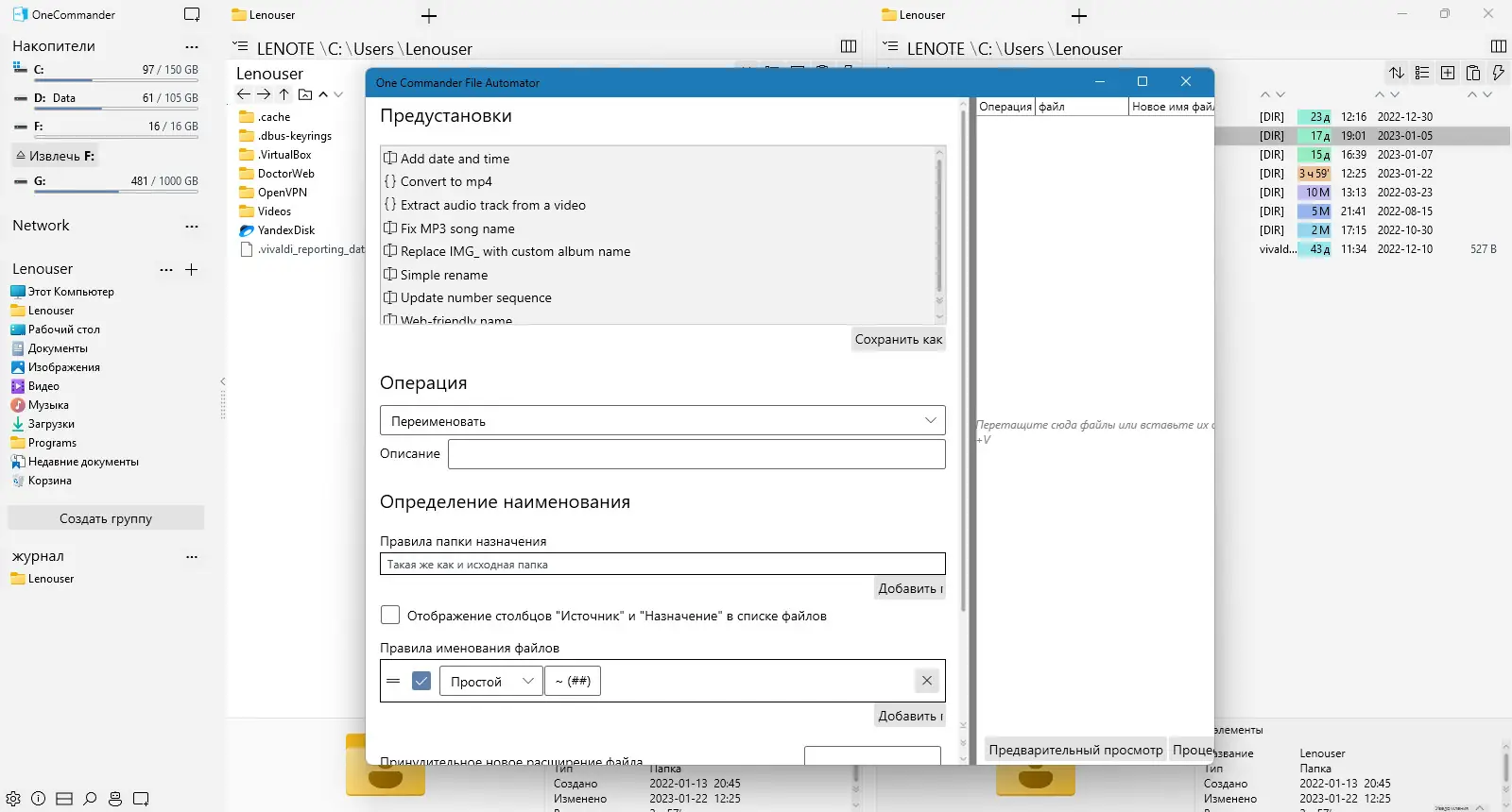 - Инструмент массового переименования с поддержкой регулярных выражений и шаблонов