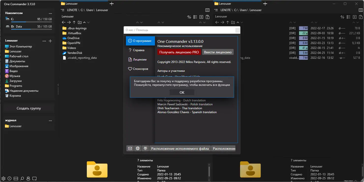 One Commander V3 — это современный файловый менеджер для Windows, предлагающий продуманный интерфейс с двойными панелями, вкладками, навигацией по столбцам и встроенным просмотром файлов. Программа оптимизирует работу с файловой системой, заменяя стандартный проводник на более функциональное и быстрое решение. Она бесплатна для домашнего использования и не содержит вредоносной рекламы.