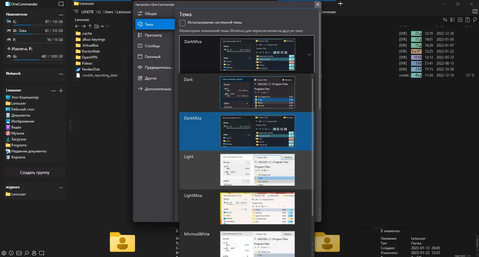 - Гибкая настройка внешнего вида, включая темы и цветовые схемы