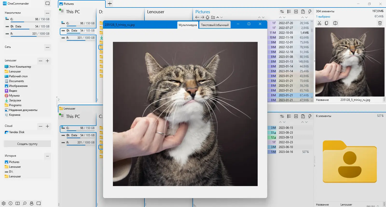 OneCommander предлагает альтернативу классическому проводнику Windows, пересматривая подход к работе с файловой системой. Интерфейс построен на двух параллельных панелях, что упрощает копирование и перемещение между каталогами. Поддержка вкладок позволяет быстро переключаться между разными директориями без необходимости открывать дополнительные окна. Навигация по столбцам напоминает поведение Finder в macOS, но адаптирована под логику Windows. Это особенно полезно при работе с глубоко вложенными структурами папок. Встроенный предварительный просмотр показывает содержимое изображений, текстовых файлов и документов без их открытия. Система тем и цветовые метки помогают визуально структурировать данные, выделяя важные файлы. Пользователи могут настраивать внешний вид под свои предпочтения, включая шрифты, цветовые схемы и расположение элементов.