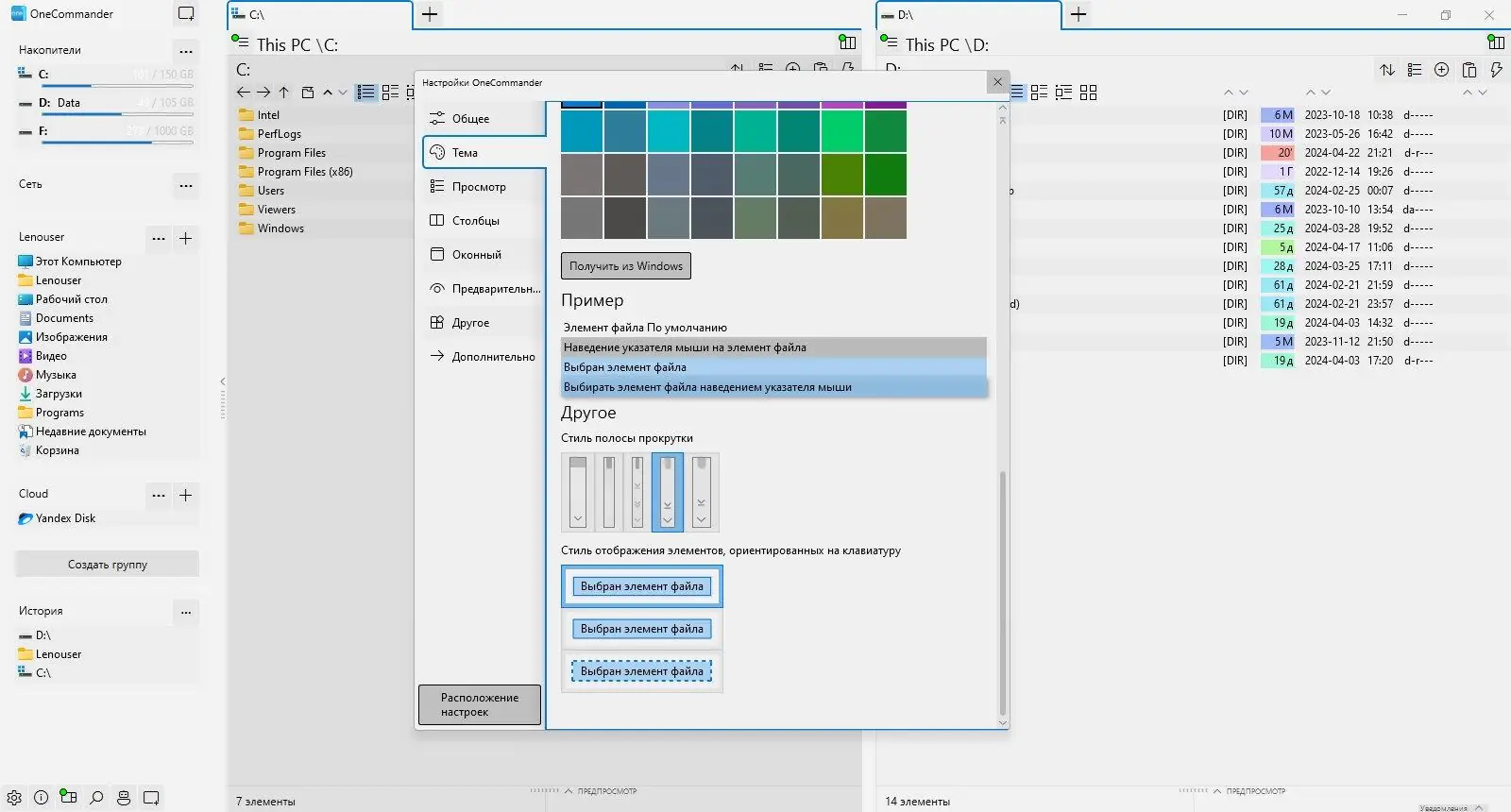 Работа с программой начинается с настройки интерфейса под индивидуальные предпочтения: можно выбрать тему оформления, настроить отображение панелей и включить автоматическое изменение ширины колонок. При открытии папки с большим количеством элементов достаточно начать вводить часть названия на клавиатуре — список мгновенно фильтруется. Для копирования или перемещения файлов из разных источников используется буфер задач, где можно собрать все нужные элементы, указать целевую директорию и выполнить операцию единым действием. Изображения можно не только просматривать, но и конвертировать в другие форматы прямо в интерфейсе, без запуска сторонних приложений.