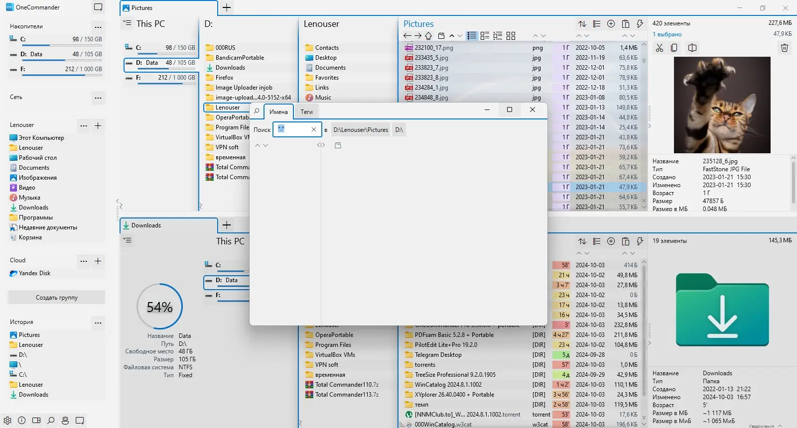 OneCommander не стремится лишь повторить функционал стандартного проводника, а предлагает новую философию взаимодействия с файловой системой.
