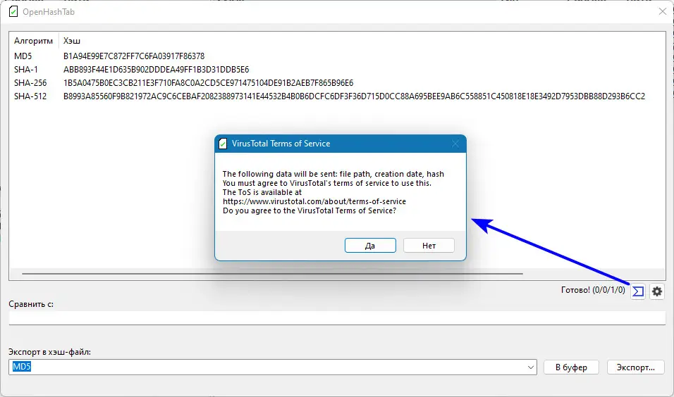 - Поддержка экспорта хешей в буфер обмена и в файлы в различных форматах для дальнейшего использования.