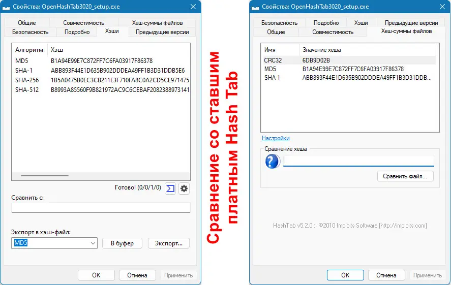 OpenHashTab представляет собой альтернативу популярной утилите HashTab, ориентированную на пользователей, которым важны прозрачность, безопасность и функциональность. Программа позволяет проверять целостность данных, сравнивая хеш-значения файлов с эталонными, что особенно полезно при загрузке программ, образов дисков или архивов из ненадёжных источников. Благодаря открытому исходному коду, каждый может убедиться в отсутствии вредоносного кода и внести вклад в развитие проекта.
