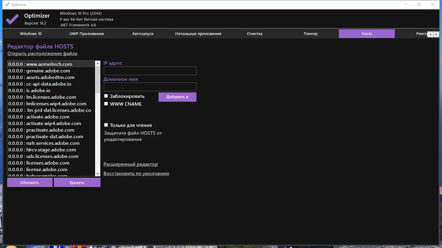 - Возможность удалять UWP-приложения и блокировать автозагрузку нежелательных программ улучшает общую отзывчивость системы.