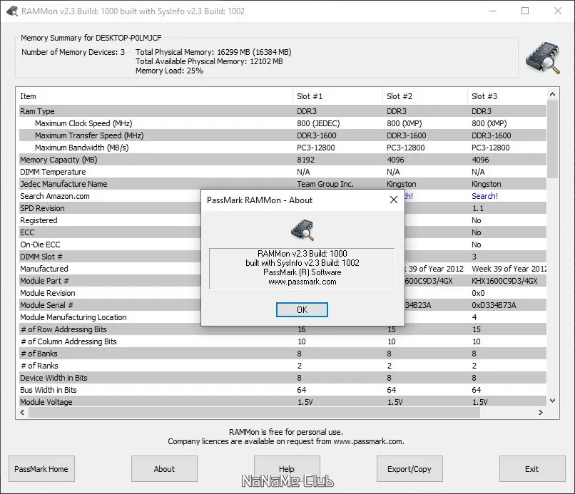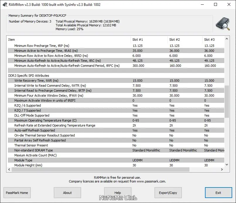 PassMark RAMMon — это инструмент для детального анализа параметров оперативной памяти, позволяющий получить точные данные о характеристиках установленных модулей ОЗУ, включая производителя, частоту, тайминги, температуру и серийные номера. Программа считывает информацию SPD и представляет её в удобочитаемом виде, что особенно полезно при апгрейде системы или диагностике нестабильной работы памяти. Поддержка различных типов RAM, включая DDR2, DDR3, DDR4, DDR5, а также серверных модификаций, делает утилиту универсальной для широкого спектра пользователей.