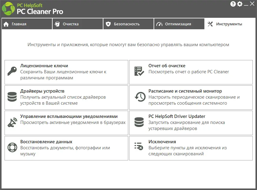 Программа сочетает в себе скорость, надёжность и широкий функционал для ежедневного ухода за системой.