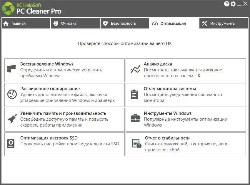 PC Cleaner предлагает широкий функционал, ориентированный на улучшение работы компьютера. Она сочетает в себе инструменты для технического обслуживания, оптимизации и защиты данных, что делает её универсальным решением для домашних и офисных ПК. Программа экономит время, автоматизируя процессы, которые вручную требуют много усилий и знаний. При этом она остаётся простой в освоении благодаря интуитивному интерфейсу и чёткой структуре меню.