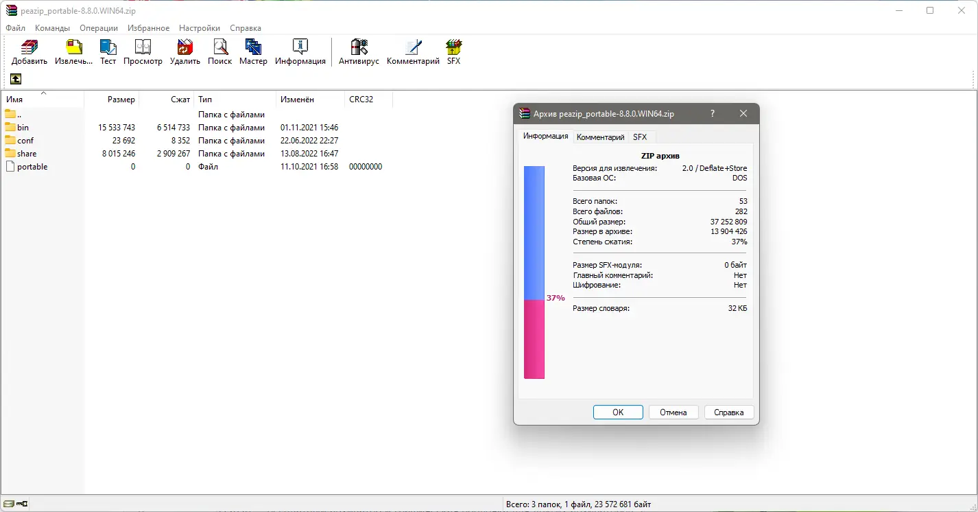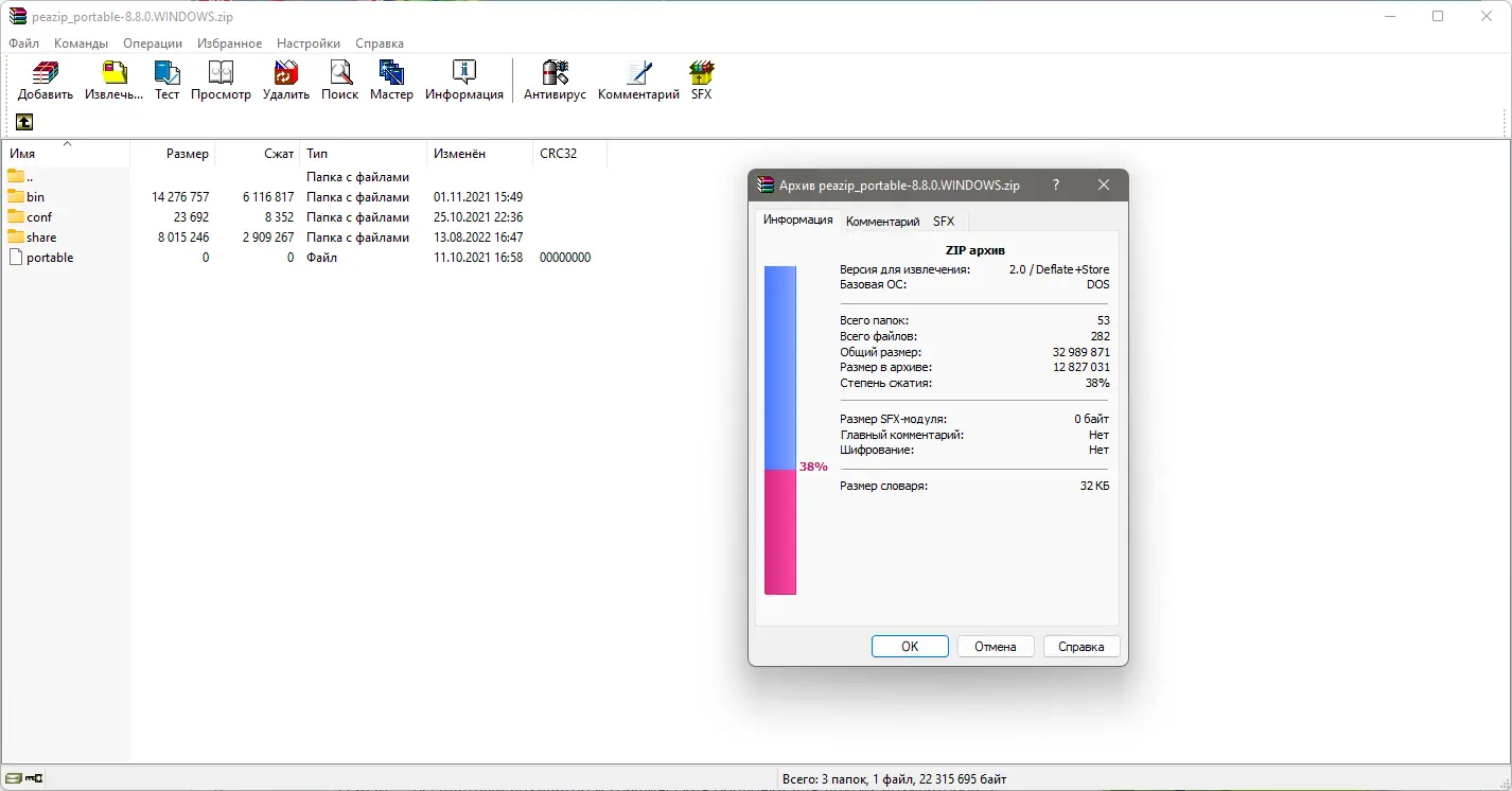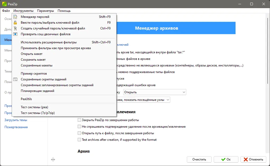 PeaZip сочетает в себе простоту интерфейса и глубокую настройку параметров архивации, что делает его подходящим как для новичков, так и для продвинутых пользователей.