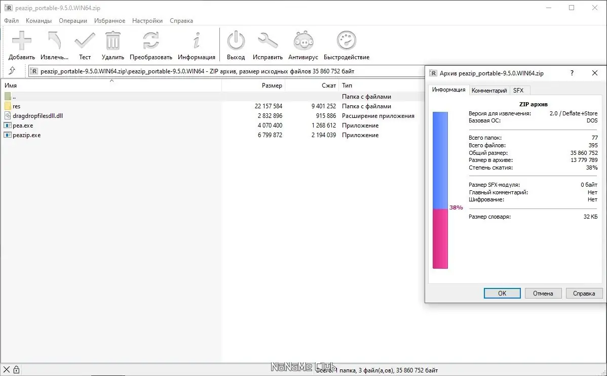 PeaZip демонстрирует высокую функциональность и стабильность, оставаясь при этом полностью бесплатным решением. Он предлагает продвинутые функции, такие как многотомная архивация, шифрование, безопасное удаление и поддержку редких форматов. Программа активно развивается, а её портативная версия позволяет запускать её с флеш-накопителя без установки. При этом интерфейс может показаться перегруженным новичкам, а некоторые функции требуют понимания принципов работы с архивами и командной строки.