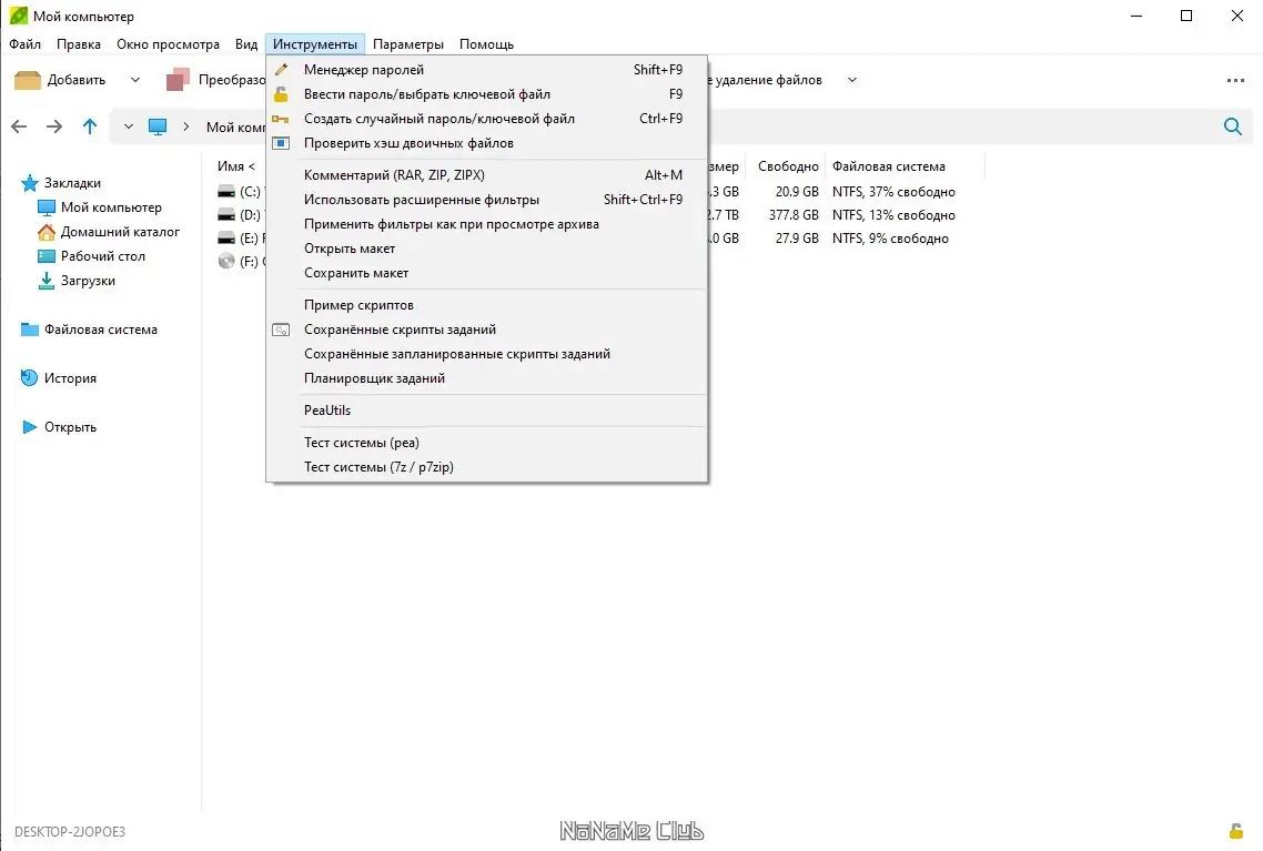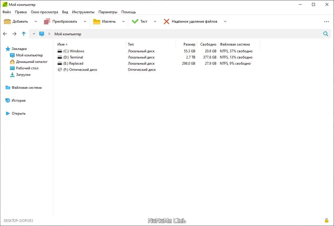 - Работа с закладками для быстрого доступа к часто используемым архивам и каталогам