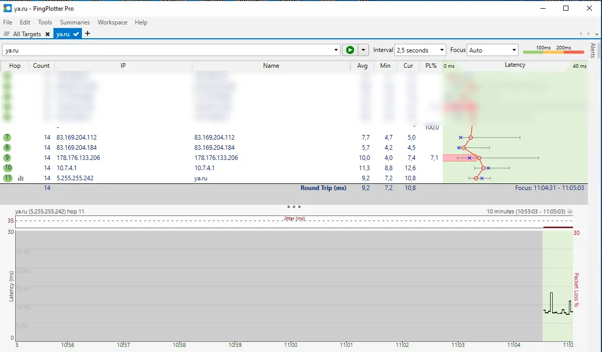 PingPlotter предназначен для постоянного наблюдения за состоянием сетевого подключения и диагностики его производительности. Утилита последовательно отправляет ICMP-запросы на каждый хост по маршруту до указанного адреса, фиксируя время отклика и процент потерянных пакетов. Эти данные отображаются в виде наглядных графиков, что упрощает анализ стабильности соединения в течение времени. Программа поддерживает режим непрерывного мониторинга, позволяя выявлять временные сбои, которые сложно обнаружить стандартными средствами. Благодаря такому подходу можно точно локализовать, на каком участке сети возникает перегрузка или обрыв. Версия pro расширяет функционал за счёт дополнительных инструментов автоматизации и интеграции.