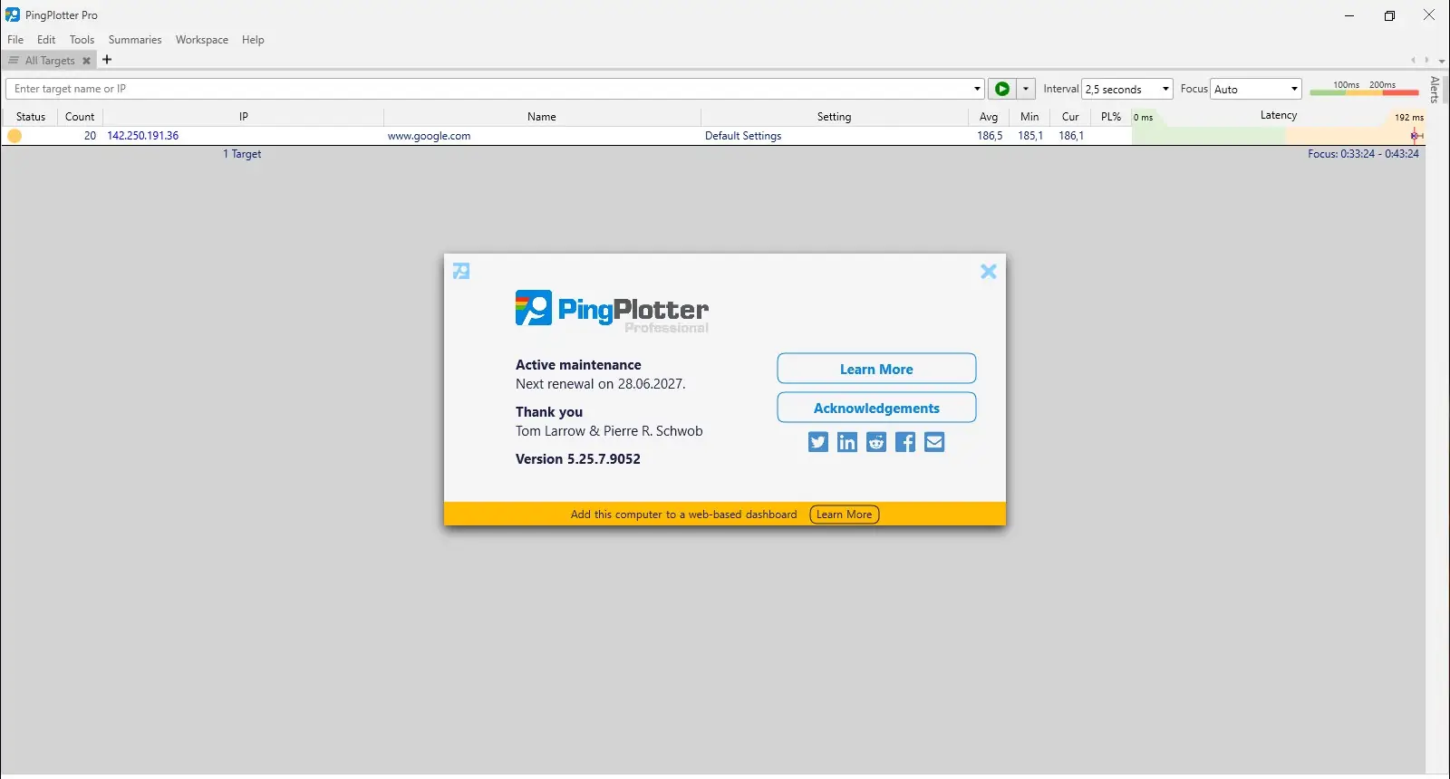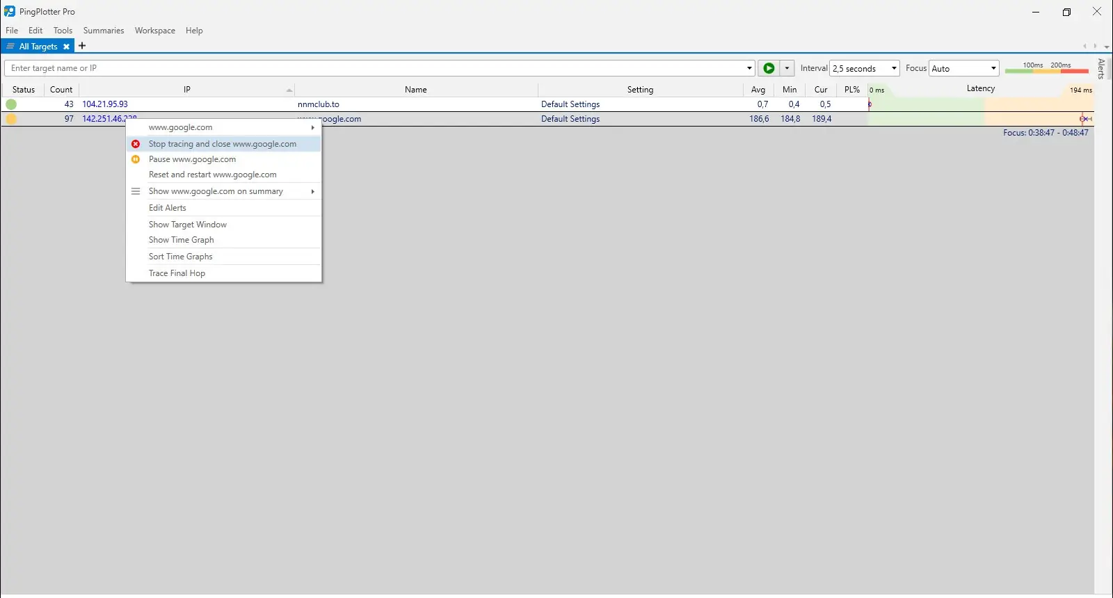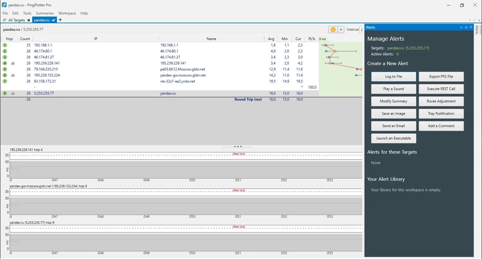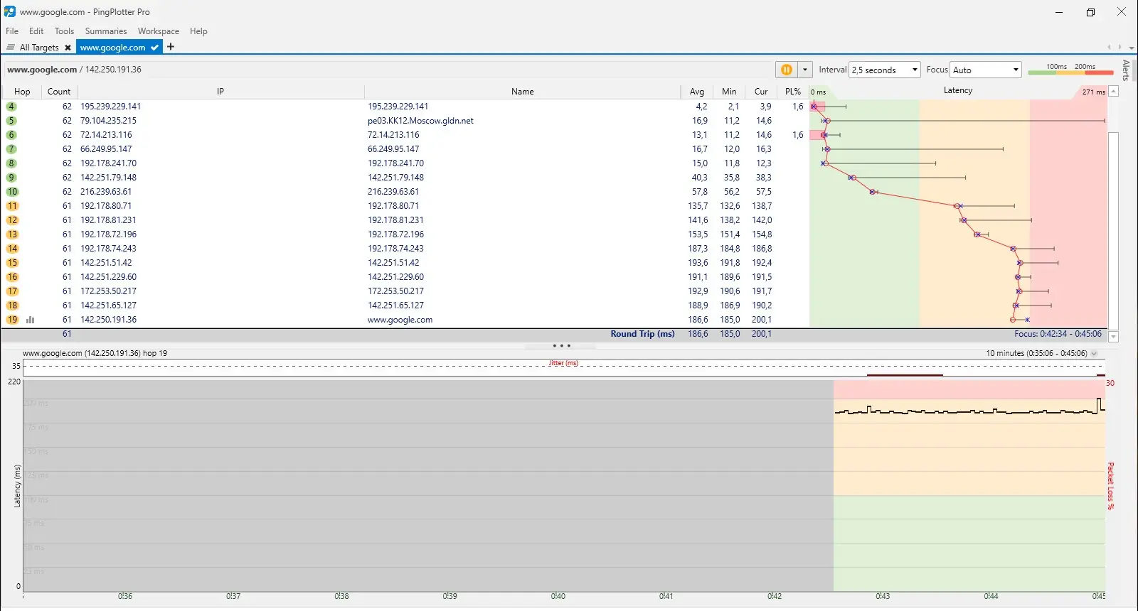 PingPlotter Pro предназначен для комплексного сетевого мониторинга, позволяя пользователю наблюдать за качеством соединения в режиме реального времени. Программа осуществляет пошаговую трассировку сигнала от устройства до конечного сервера, фиксируя задержки и потери пакетов на каждом узле. Это делает её незаменимым решением при диагностике нестабильного интернета, особенно в условиях онлайн-игр, видеоконференций или удалённой работы.