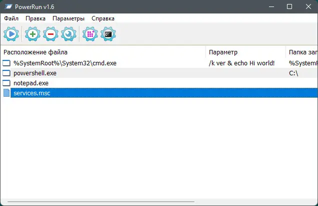- Поддержка запуска regedit, cmd и других исполняемых файлов с правами системных учётных записей