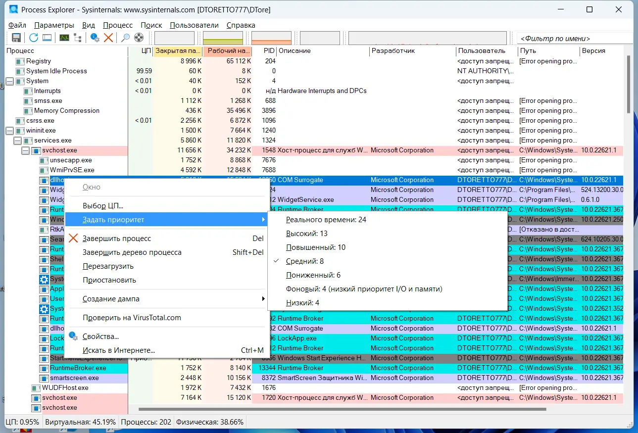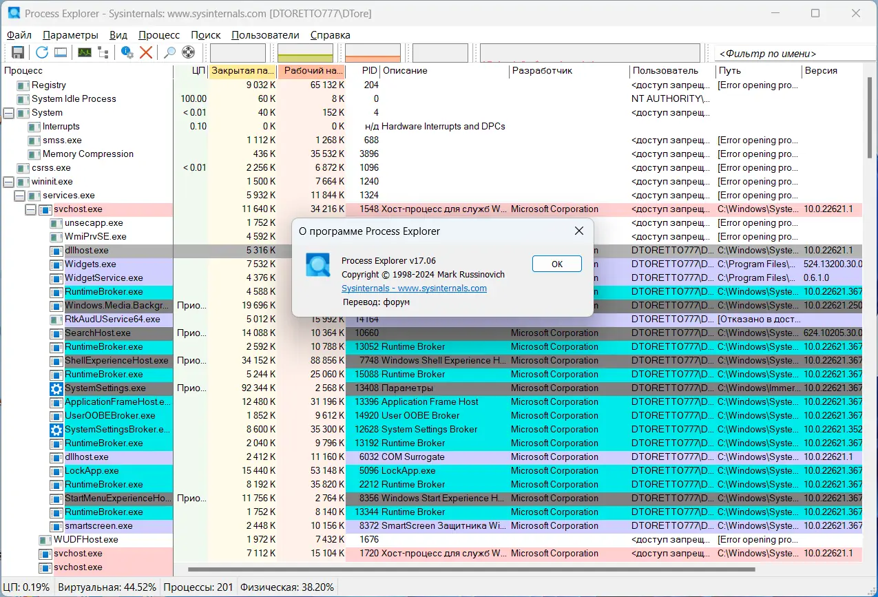 Process Explorer — это мощная системная утилита, предназначенная для детального анализа и управления процессами в операционной системе. Программа предоставляет расширенную информацию о запущенных задачах, включая использование ресурсов, зависимости от библиотек и связи с системными объектами. Благодаря глубокой интеграции с архитектурой windows, она выходит далеко за рамки возможностей стандартного диспетчера задач.