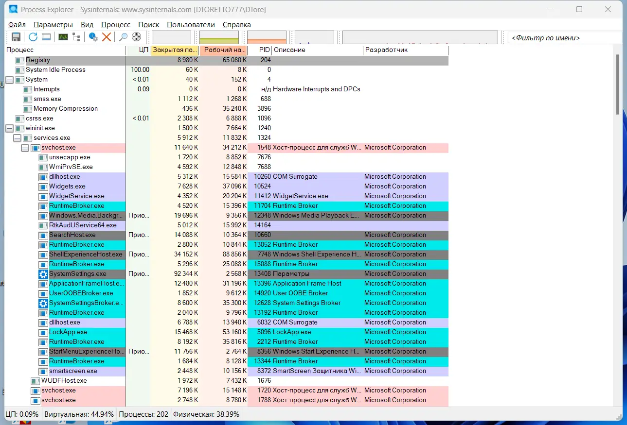 Утилита разработана компанией microsoft в рамках проекта sysinternals и предназначена для продвинутого мониторинга системы. Она отображает процессы в виде дерева, показывая родительские и дочерние связи, что позволяет легко отследить, какой компонент запустил тот или иной элемент. Каждый процесс сопровождается подробными данными: путь к исполняемому файлу, уровень потребления процессора, объём используемой памяти, активность диска и сети, а также информация о безопасности и учётной записи.
