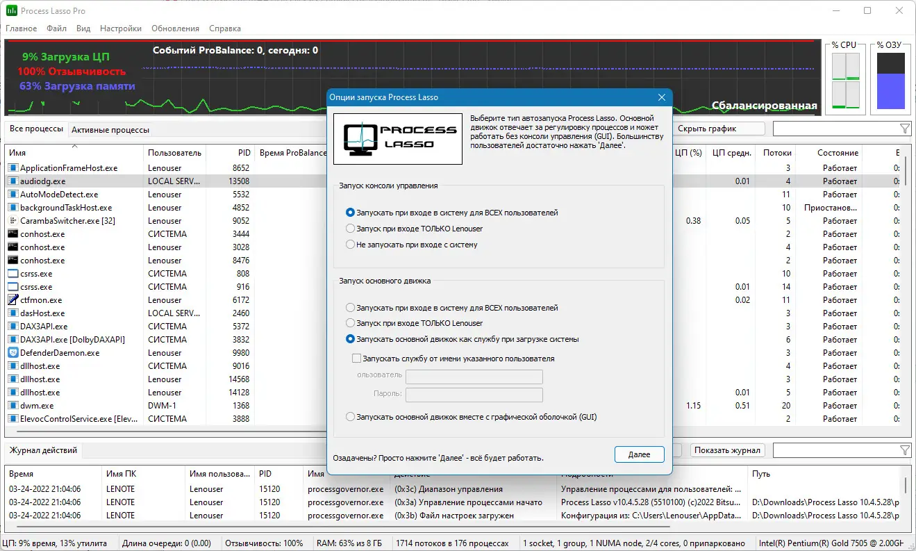 Process Lasso разработан для тонкой настройки работы фоновых и активных процессов в среде Windows. В отличие от стандартного диспетчера задач, он не просто отображает информацию, а активно вмешивается в распределение ресурсов процессора. Программа предотвращает ситуации, когда одно приложение захватывает все ядра ЦП, что особенно актуально при выполнении многозадачных операций. Это достигается за счёт динамического регулирования приоритетов и использования алгоритмов, направленных на поддержание баланса между производительностью и стабильностью.