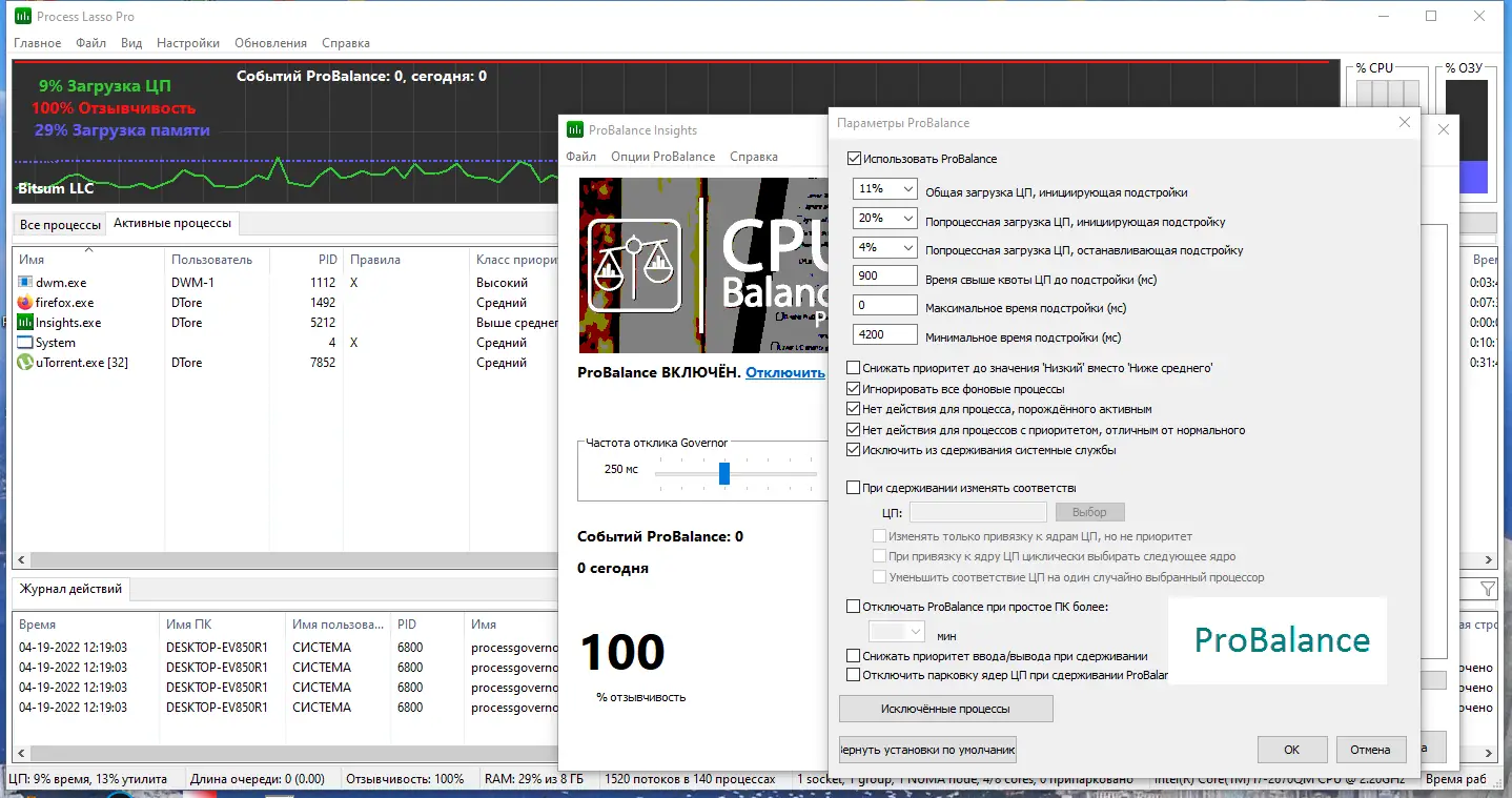 - Автоматическое регулирование приоритетов процессов с помощью технологии ProBalance