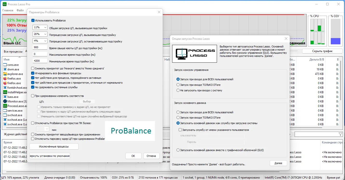 Программа Process Lasso предназначена для тонкой настройки поведения процессов в реальном времени. Она отслеживает активность приложений, определяет те, которые чрезмерно нагружают процессор, и корректирует их приоритеты без вмешательства пользователя. Это особенно полезно в многозадачных сценариях, когда фоновые процессы могут мешать работе с активным окном, вызывая лаги и задержки ввода.