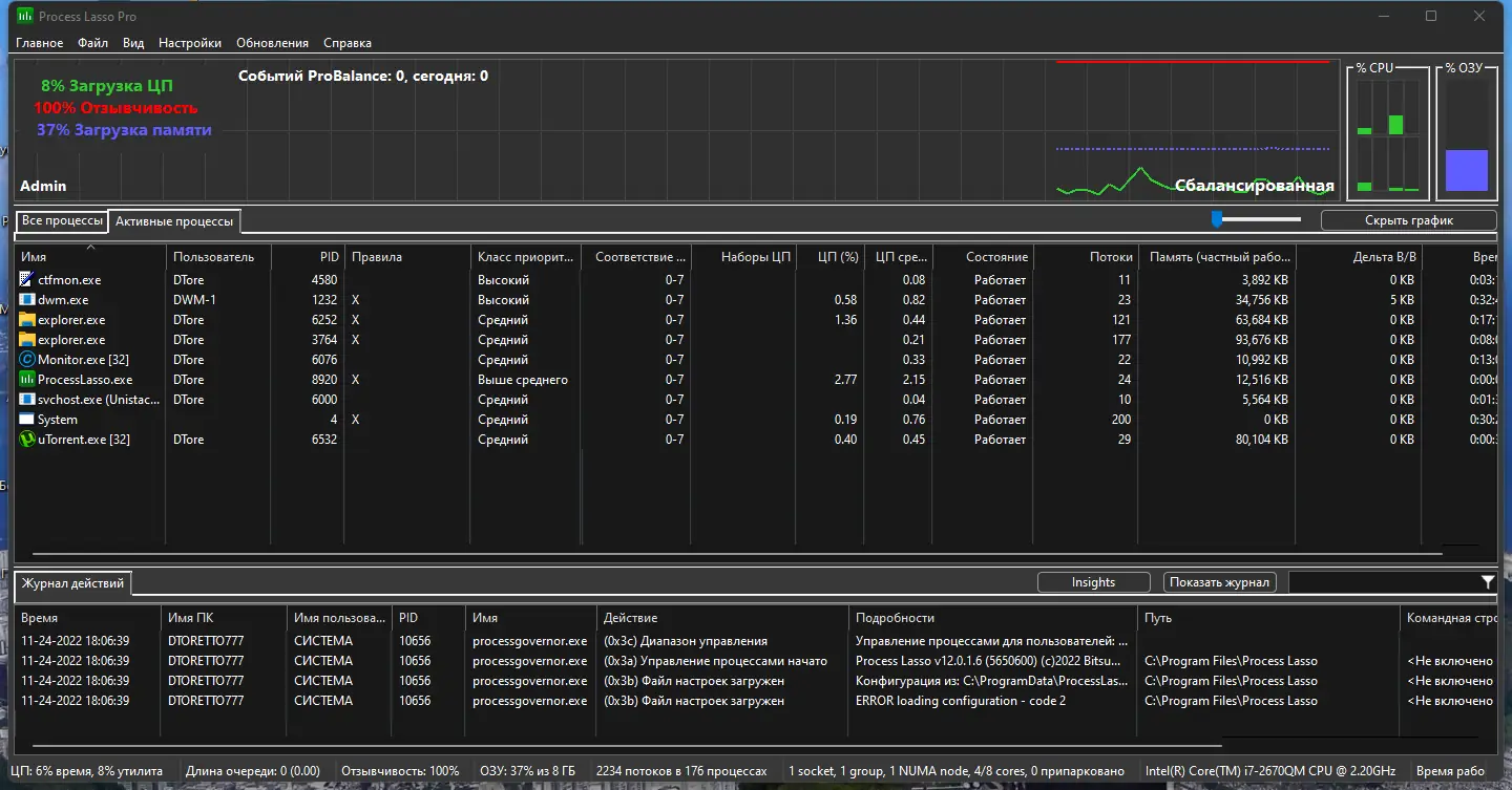 Process Lasso не просто отслеживает процессы — он динамически адаптирует их приоритеты для поддержания оптимальной отзывчивости системы.