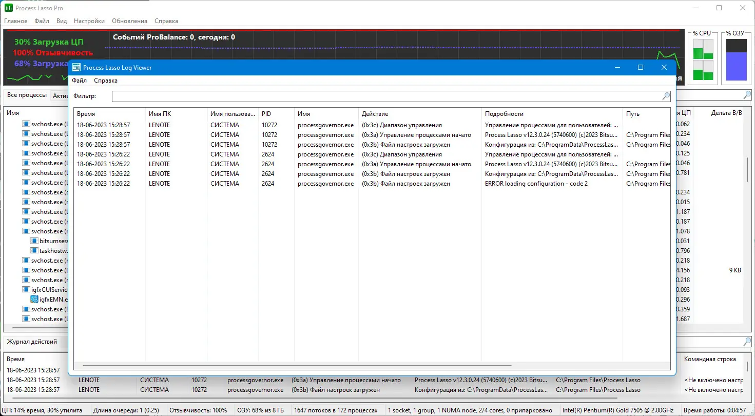 Process Lasso разработана для тонкого контроля над выполняющимися процессами в реальном времени. Утилита отслеживает активность программ, особенно тех, которые чрезмерно потребляют ресурсы ЦП, и применяет меры для снижения их влияния на общую производительность. В отличие от стандартного диспетчера задач Windows, программа действует проактивно, предотвращая зависания и лаги.