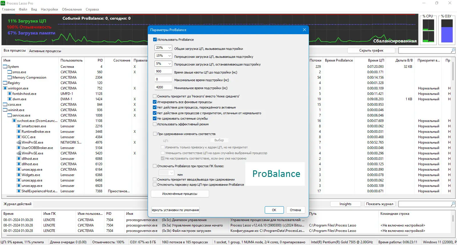 - Автоматическое управление приоритетами процессов через технологию ProBalance.