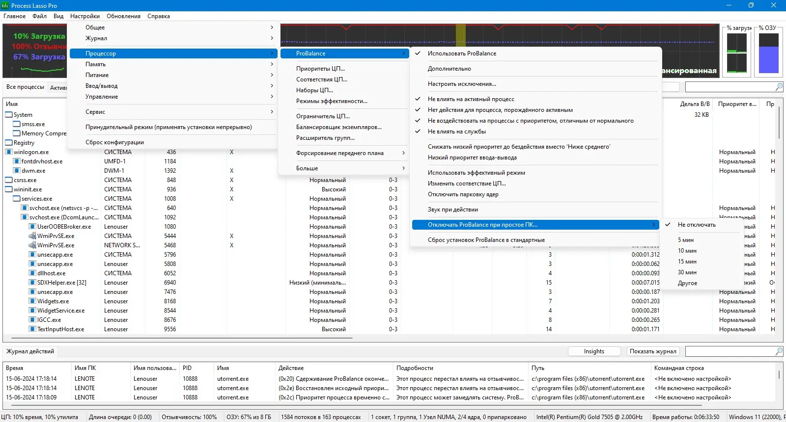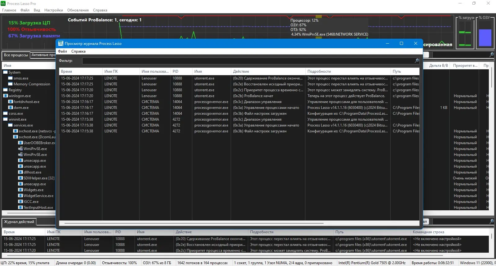 Process Lasso — инструмент для управления процессами в операционной системе Windows, направленный на повышение отзывчивости и стабильности работы компьютера. Программа автоматически регулирует приоритеты запущенных приложений, предотвращая перегрузку центрального процессора и обеспечивая плавную работу системы даже под высокой нагрузкой. Благодаря технологии ProBalance, процессорные ресурсы распределяются более равномерно, что особенно полезно при одновременном запуске нескольких ресурсоёмких задач.