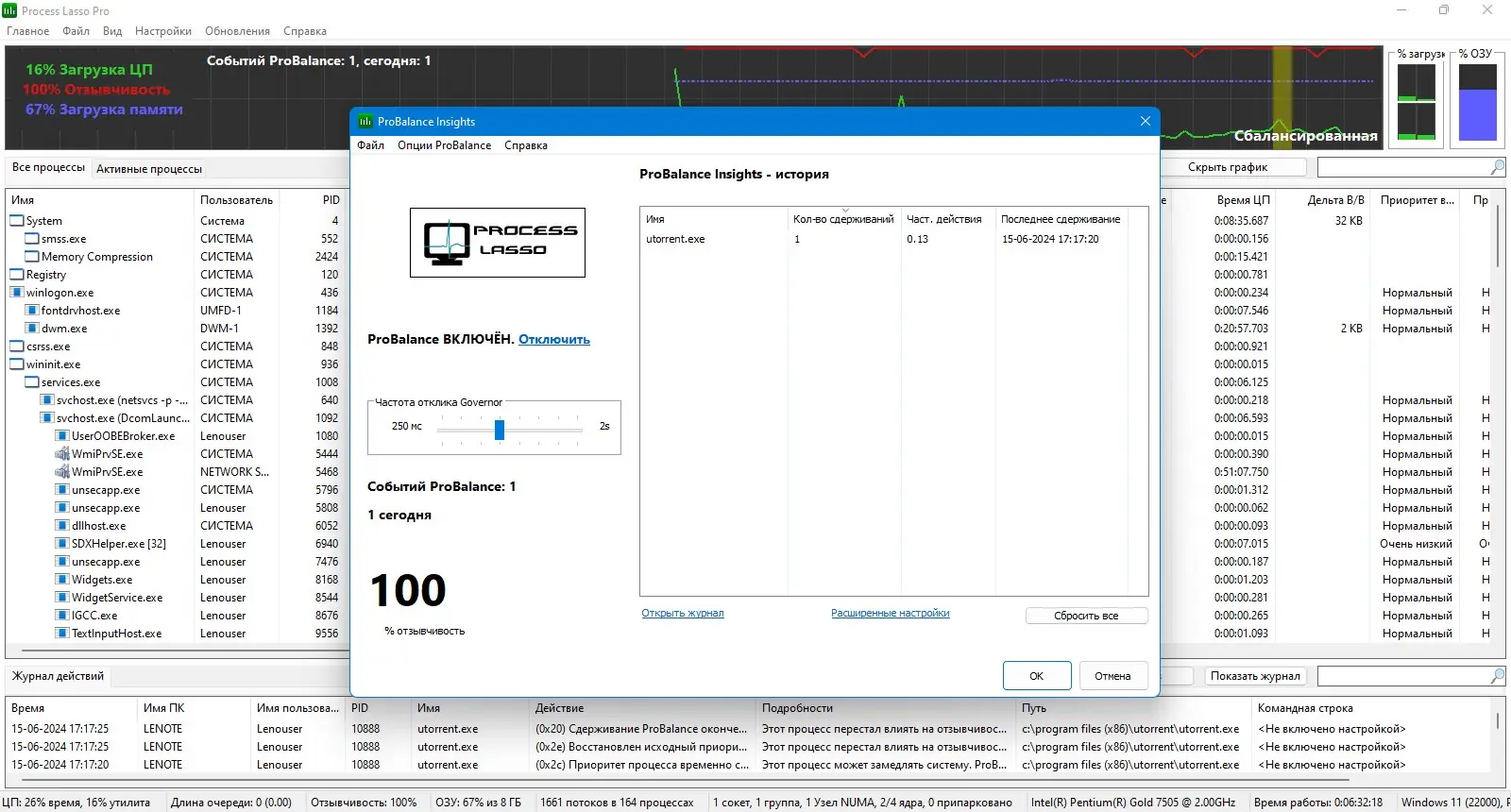 Использование Process Lasso положительно сказывается на общей отзывчивости системы, особенно на компьютерах со слабыми или средними характеристиками. Программа эффективно справляется с задачами балансировки нагрузки и предотвращения «подтормаживаний» при пиковых нагрузках. При этом она не требует постоянного контроля со стороны пользователя — большинство функций работают в фоне автономно. Тем не менее, из-за глубокой интеграции в систему, неправильная настройка может привести к неожиданным последствиям, особенно у неопытных пользователей.