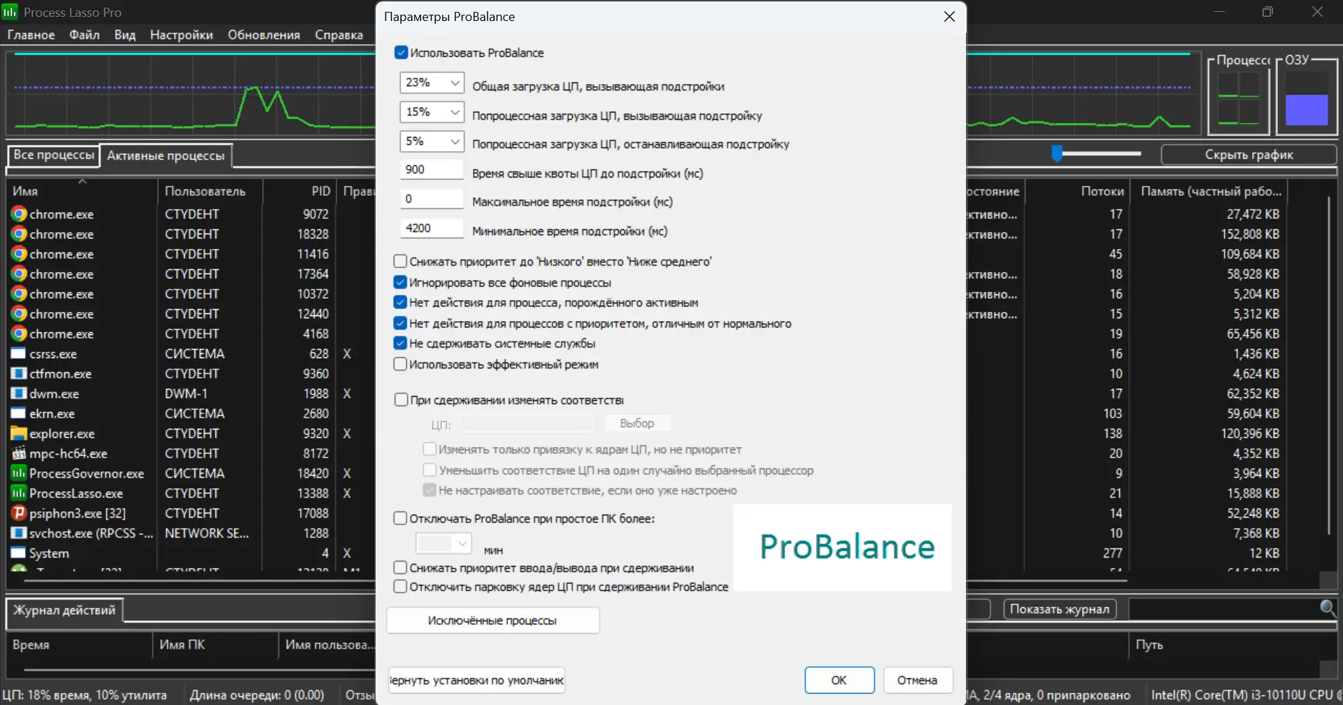 - Автоматическое управление приоритетами процессов с помощью технологии ProBalance