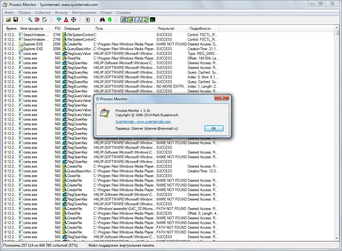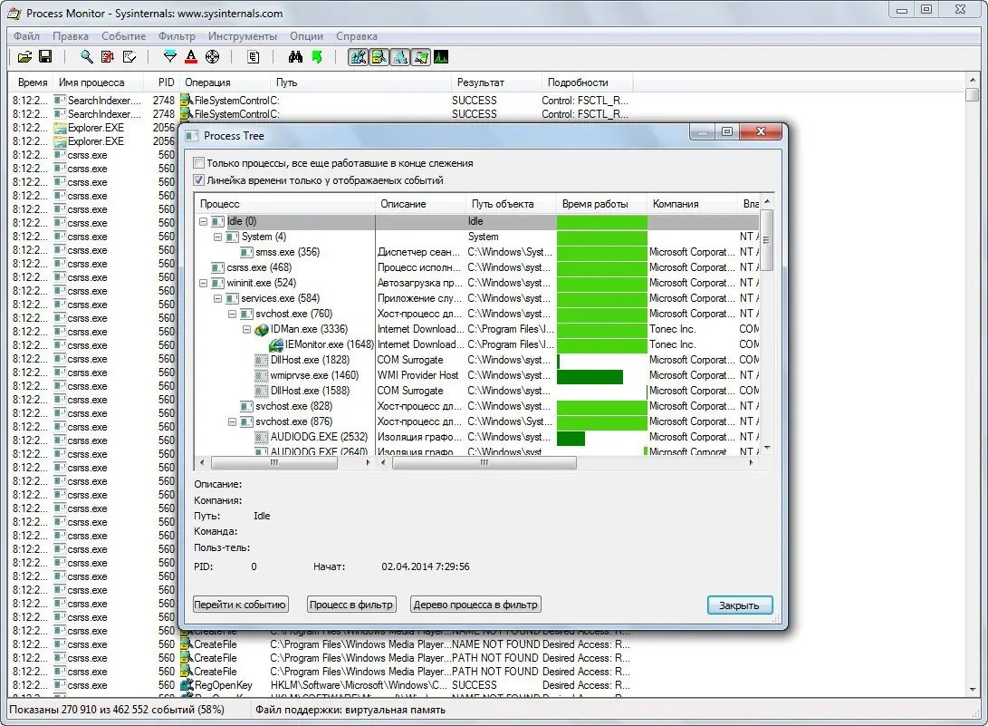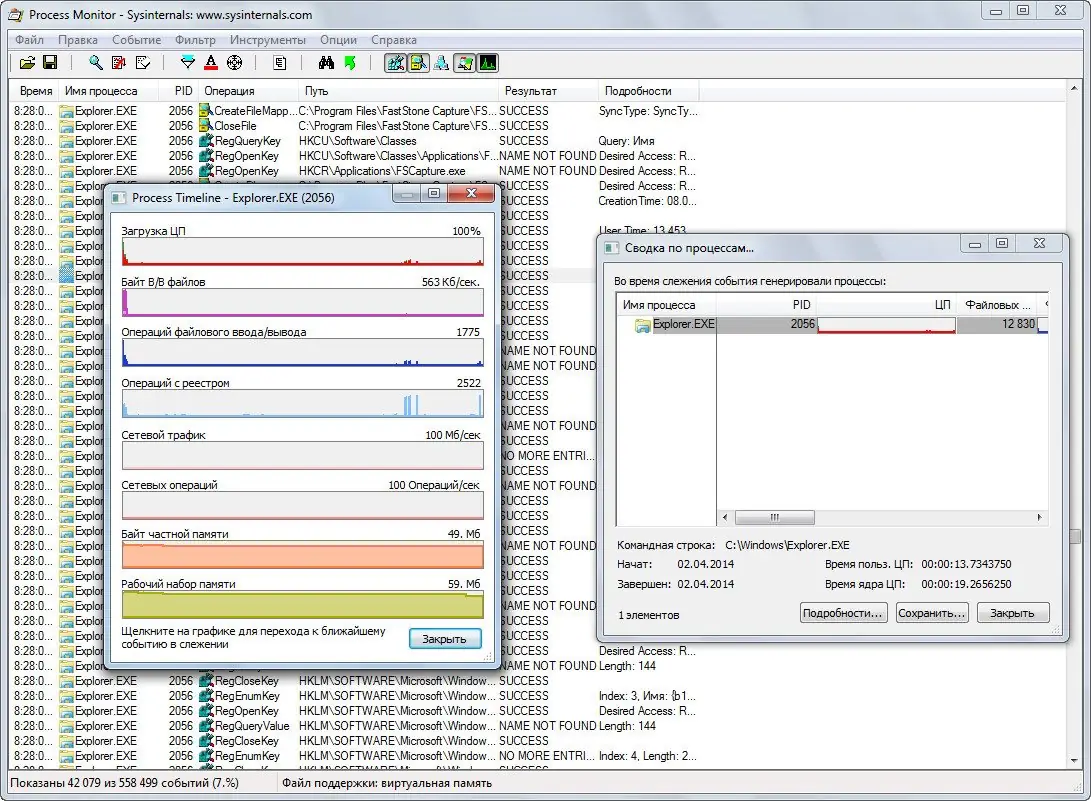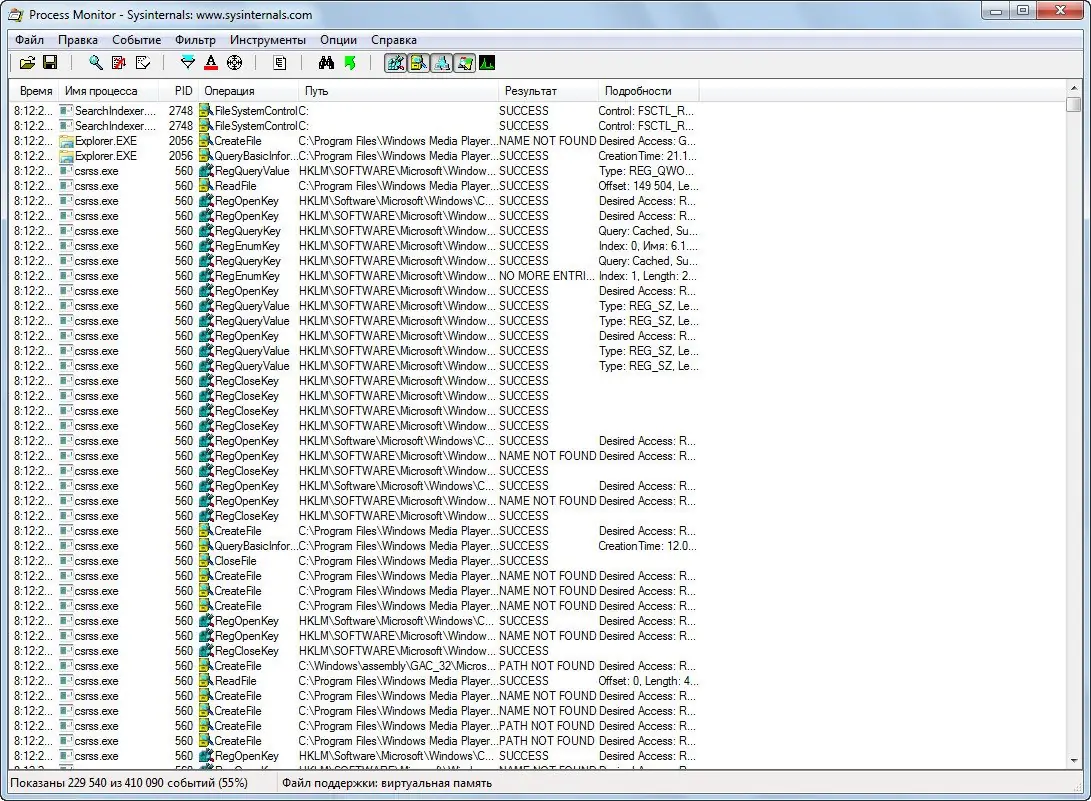 Полноценная интеграция с архитектурой операционной системы позволяет Process Monitor эффективно работать даже на высоконагруженных машинах.