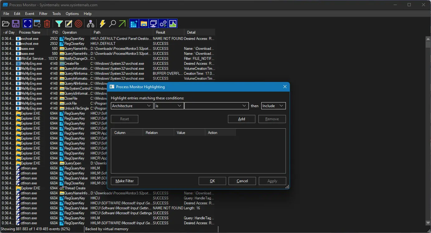Как пользоваться Process Monitor