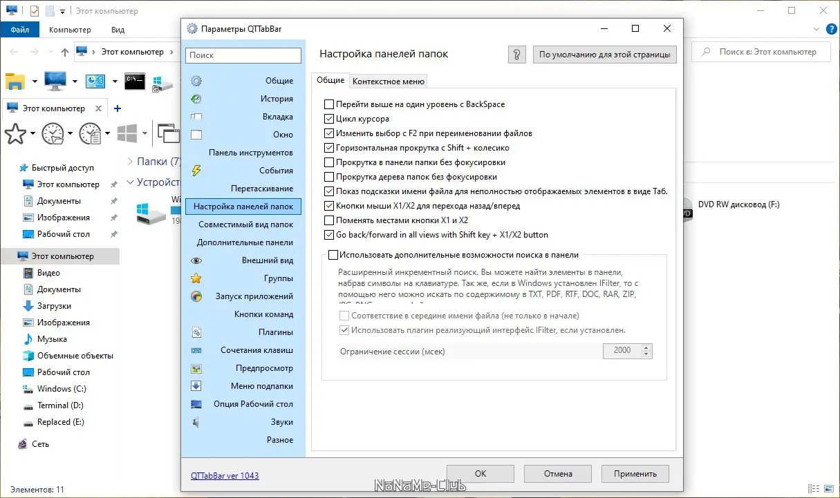 QTTabBar интегрируется в проводник операционной системы, не заменяя его, а расширяя функционал. Основная особенность — поддержка вкладок, позволяющая открывать несколько директорий в одном окне, что экономит место на экране и ускоряет навигацию. Утилита поддерживает сохранение сессий, так что после перезагрузки проводника все ранее открытые вкладки восстанавливаются. Дополнительно доступен предпросмотр содержимого файлов, воспроизведение аудио при наведении и фильтрация отображаемых элементов. Расширение совместимо с различными версиями windows, включая windows 10 и windows 11, и работает как на 32-, так и на 64-битных системах.
