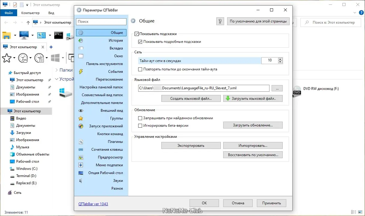 После установки требуется перезагрузка или повторный вход в систему для активации расширения. Включение Панели вкладок осуществляется через контекстное меню проводника или настройки самой утилиты. Для удобства можно настроить внешний вид вкладок, выбрать сторонние темы и изменить поведение горячих клавиш. Поддержка сторонних языков реализована через встроенный загрузчик — локализацию можно скачать прямо из интерфейса. Для этого нужно открыть настройки через контекстное меню на панели вкладок, перейти в раздел языка и выбрать нужный файл. Альтернативно, язык можно подключить вручную, указав путь к файлу из раздачи. Процесс настройка интуитивно понятен и не требует глубоких технических знаний. Обновление допускается поверх старых версий, но после него необходимо перезапустить проводник.