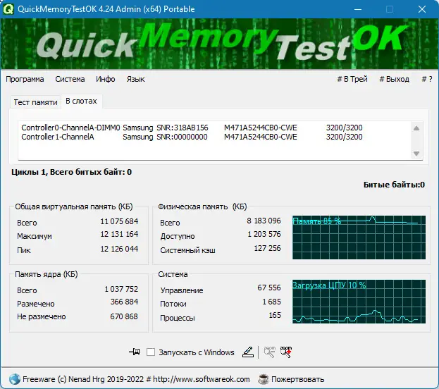 Как пользоваться QuickMemoryTestOK