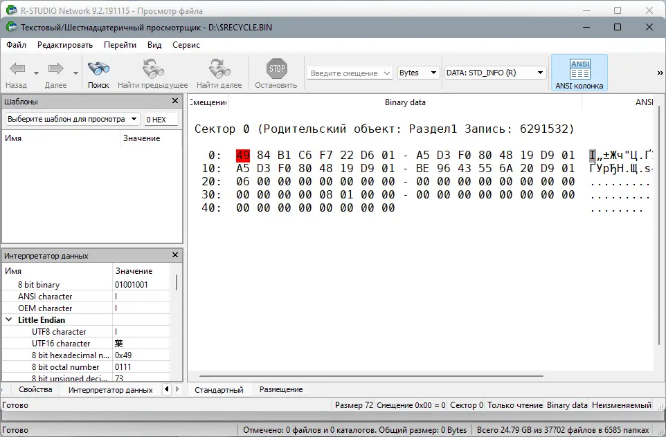 - Шестнадцатеричный редактор даёт возможность детального анализа и ручного редактирования данных, включая атрибуты файлов в NTFS.