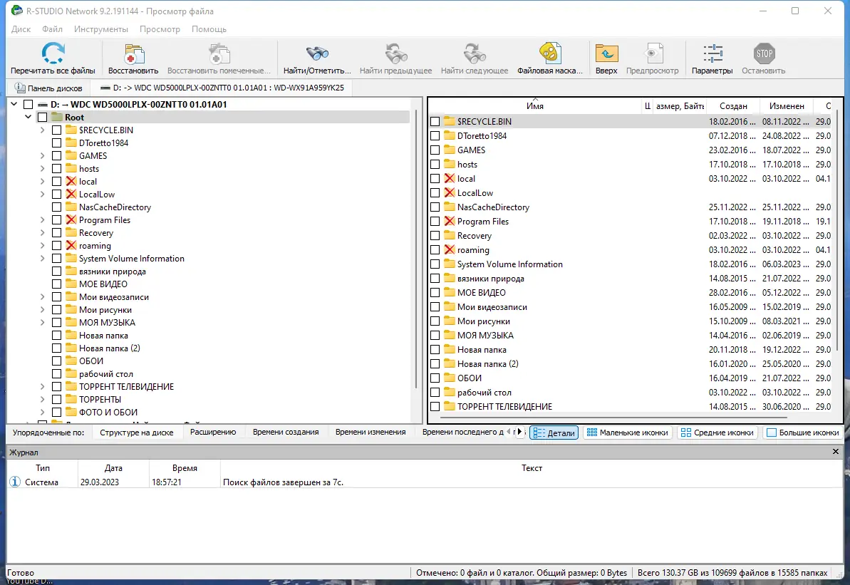 Интерфейс R-Studio построен по образцу стандартного проводника Windows, что упрощает навигацию и работу с дисками. После запуска необходимо выбрать целевой носитель, инициировать сканирование и дождаться завершения анализа файловой системы. Программа отображает найденные файлы, включая удалённые и повреждённые, позволяя отфильтровать их по типу, имени или дате.