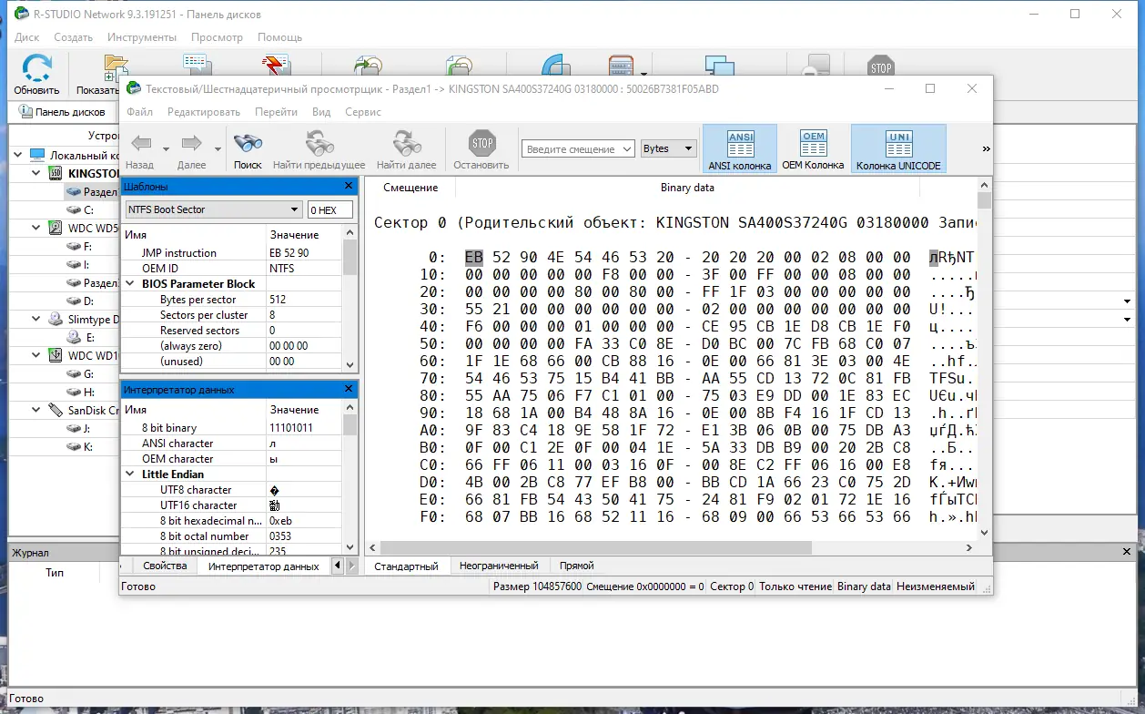 - Встроенный шестнадцатеричный редактор для просмотра и правки данных на уровне секторов