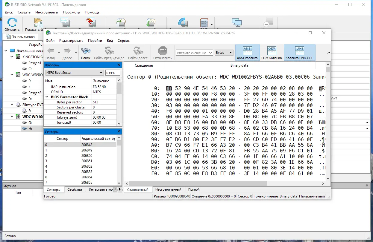 - Встроенный шестнадцатеричный редактор для детального просмотра и правки данных