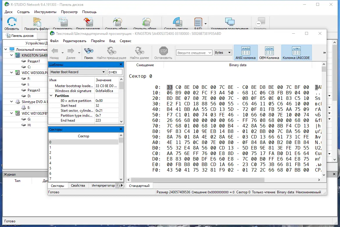 - Встроенный шестнадцатеричный редактор для детального анализа и правки данных
